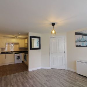 The apartment is light and spacious, offering a good sized open plan kitchen / lounge, two good sized bedrooms and a bathroom with three piece white suite & shower over bath. The property is decorated neutrally throughout.
