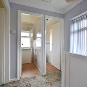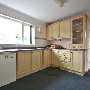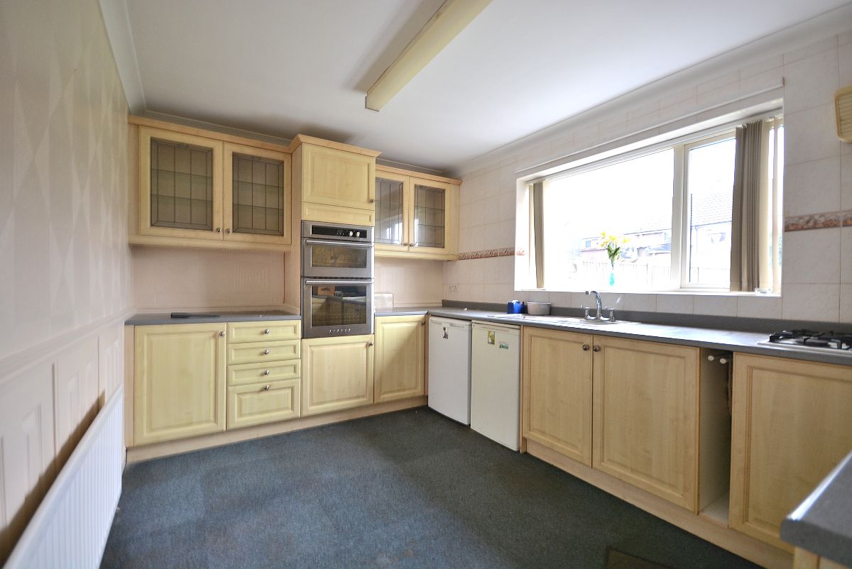 With a fitted kitchen with a range of wall cupboards, base units and drawers with working surfaces over. Inset sink with drainer. Integrated oven, four ring gas hob. There is space for a fridge/freezer, radiator, ceiling lighting, double glazed window to the rear elevation and a door opening into the: