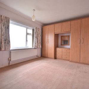 A spacious double bedroom with a radiator, ceiling lighting and a double glazed window to the front elevation.
