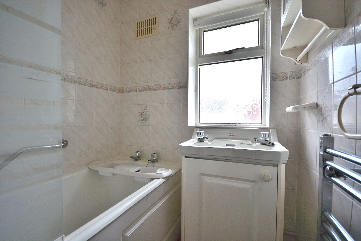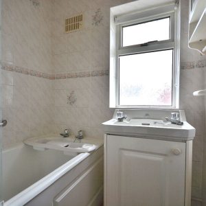 With two piece suite comprising a panelled bath and wash hand basin. There is also a heated towel radiator and an obscure double glazed window to the rear elevation.