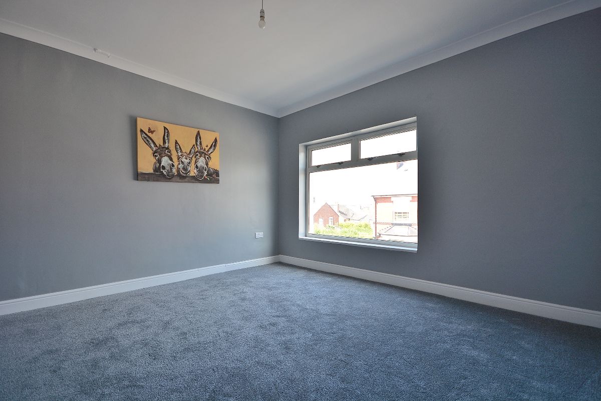 A spacious double bedroom with a radiator, ceiling lighting and a double glazed window to the front elevation.