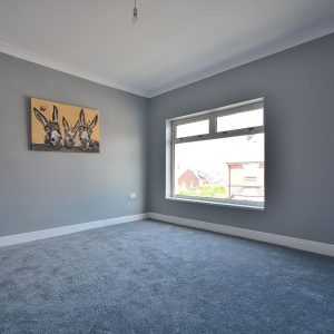 A second spacious bedroom with a radiator, ceiling lighting and a double glazed window to the front elevation.