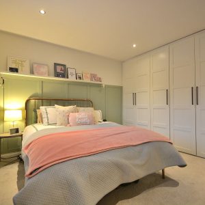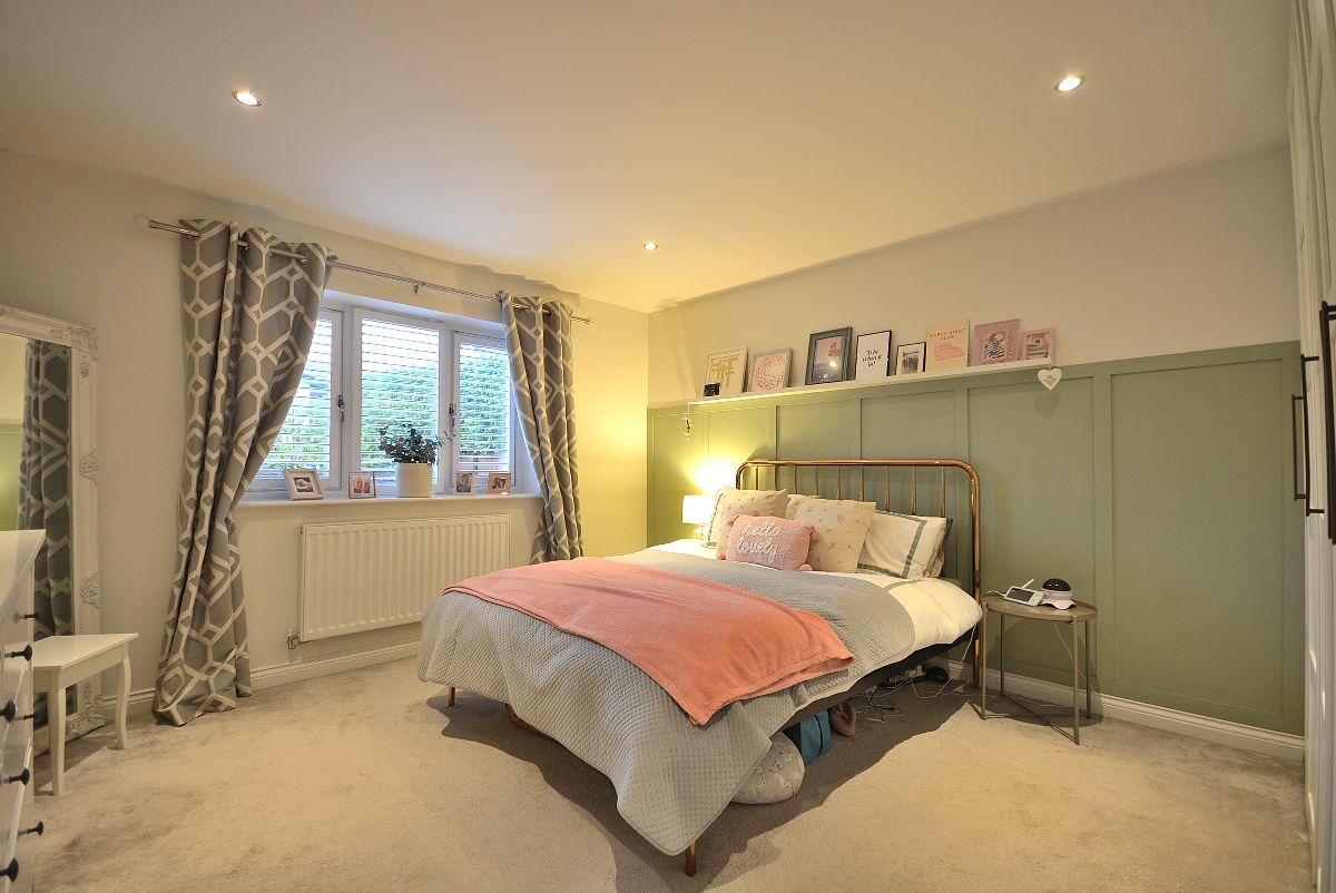 Formally the garage which has undergone a full conversion into this large magnificent fourth double bedroom which is currently in use as a play room/home office with ceiling spotlights, radiator, full height fitted wardrobes and a double glazed window to the front elevation with fitted shutters.