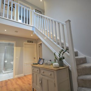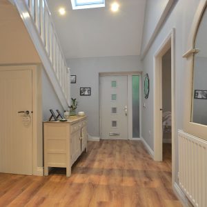 A lovely, bright and welcoming entrance hall with radiator, Velux roof window, ceiling spotlights, smoke alarm, understairs storage cupboard and stairs to the first floor landing