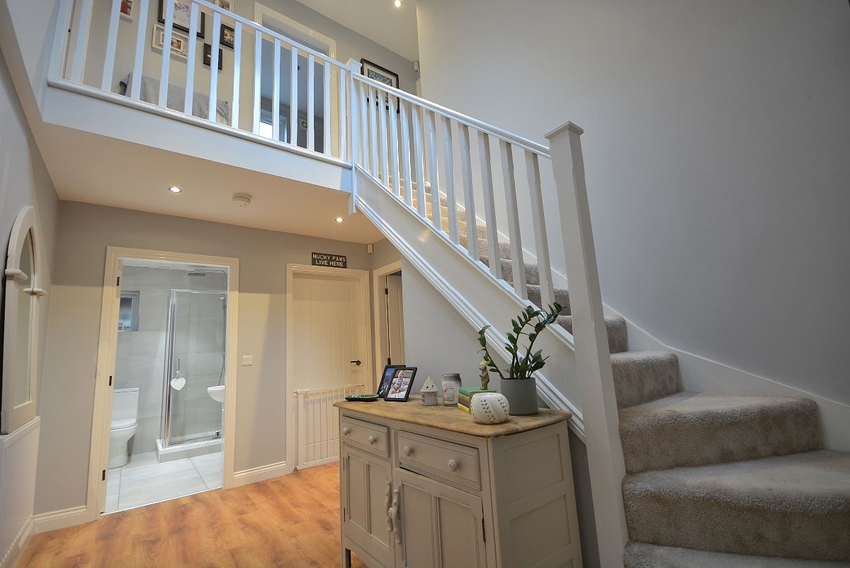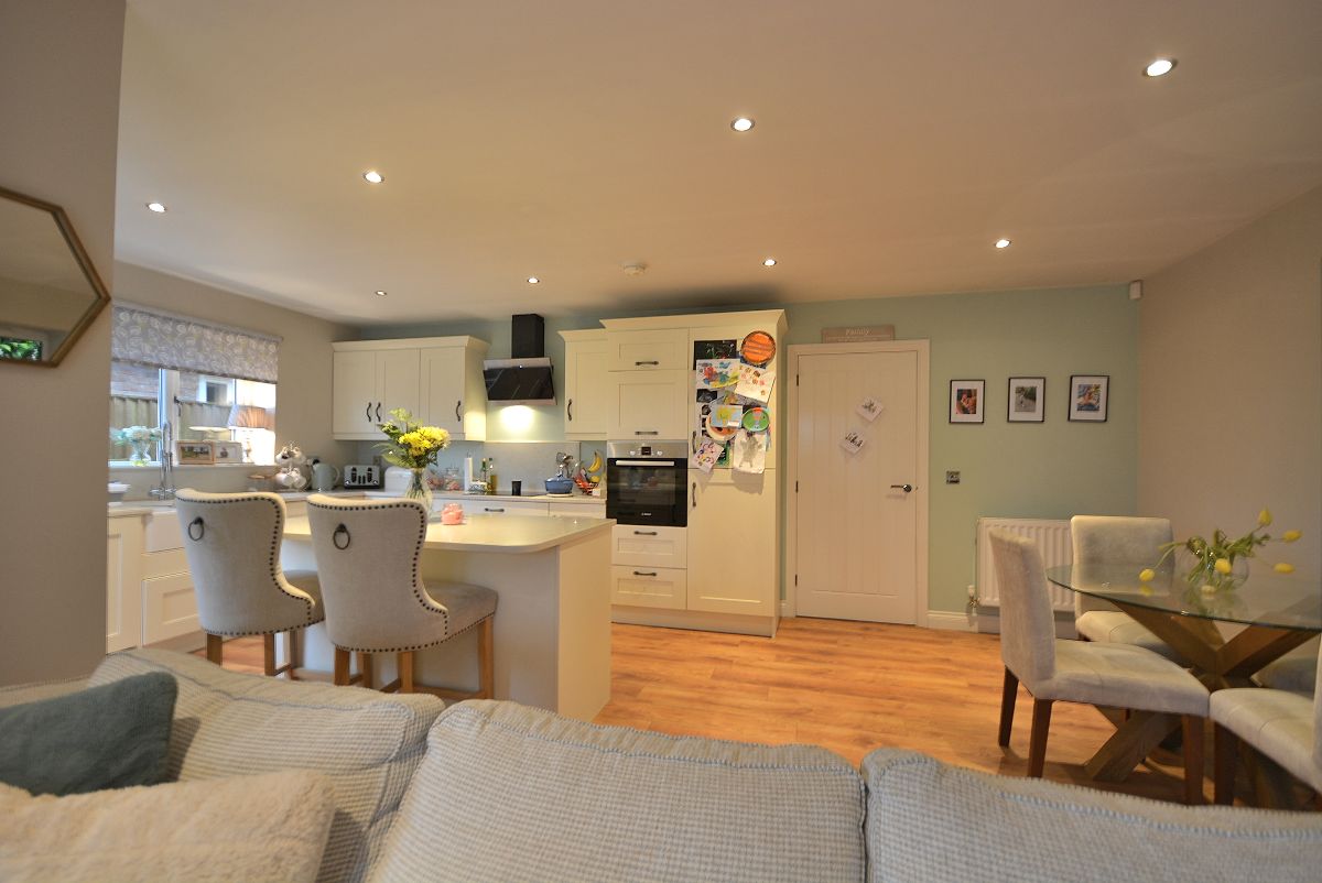 This wonderful family home comprises a vaulted entrance hall rising to the first-floor galleried landing, good sized master bedroom, shower room, utility and a garage conversion creating a fourth huge double bedroom but also offering more versatility to be used however you wish maybe even potentially as an additional reception room including its current use as a home office and playroom. At the rear of the property, there is a spacious L-shaped, open plan living kitchen with island, quartz worktops, integrated appliances and French doors leading out on to the rear garden. Upstairs there are two further double bedrooms and a bathroom comprising a four-piece suite. All four bedrooms are double sized rooms making this a real versatile and flexible home for even the larger families and finally the property benefits from gas central heating, UPVC double glazing, an alarm system, EV charging point and additional feature external lighting.