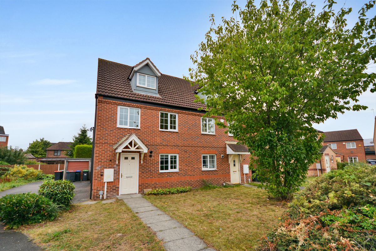 Externally the property stands on a corner plot with generous driveway with detached garage with up and over door. There is also a front garden with manageable tree that perfectly softens the frontal approach and to the rear there is a private and secure rear garden which is low maintenance benefitting from a raised decked area and slate chippings.