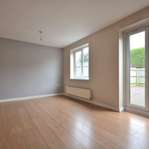 With double glazed windows to the front and side elevations, ceiling lighting, radiator, storage cupboard and stairs rising to the second floor.