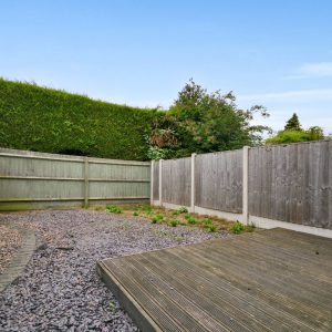 Externally the property stands on a corner plot with generous driveway with detached garage with up and over door. There is also a front garden with manageable tree that perfectly softens the frontal approach and to the rear there is a private and secure rear garden which is low maintenance benefiting from a raised decked area and slate chippings.