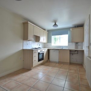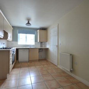 A generous kitchen with plenty of room for a dining table. Fitted with a range of neutral wall cupboards, base units and drawers with working surfaces over. Inset sink with drainer and mixer tap. Integrated oven, four ring gas hob with concealed extractor hood over. There is also space for a fridge/freezer and plumbing for a washing machine and dishwasher. There is a radiator, ceiling lighting, double glazed window to the front and wall cupboard housing the recently upgraded Baxi combi boiler with nine years warranty remaining.