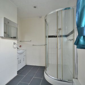 With a three piece suite comprising a corner shower enclosure with internally plumbed shower, wash hand basin and a low flush WC. There is a radiator, ceiling lighting and an obscure double glazed window to the rear elevation.