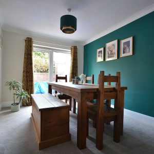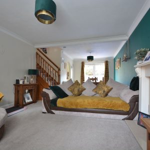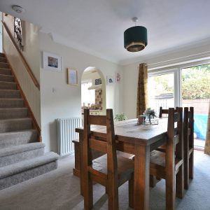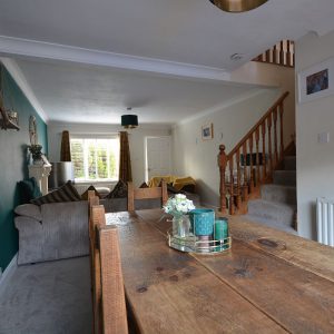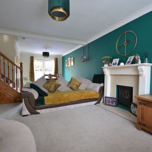 A large open plan living and dining space seamlessly rolled into one having a feature fireplace with inset electric fire. There are radiators, ceiling lighting, double glazed windows to the front and rear elevation allowing a wonderful amount of natural day light, opening into the kitchen and stairs rising to the first floor landing.