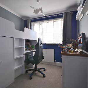 A third generous bedroom with a radiator, ceiling lighting and a double glazed window to the rear elevation.