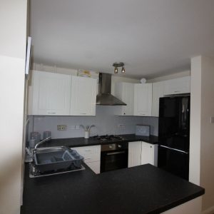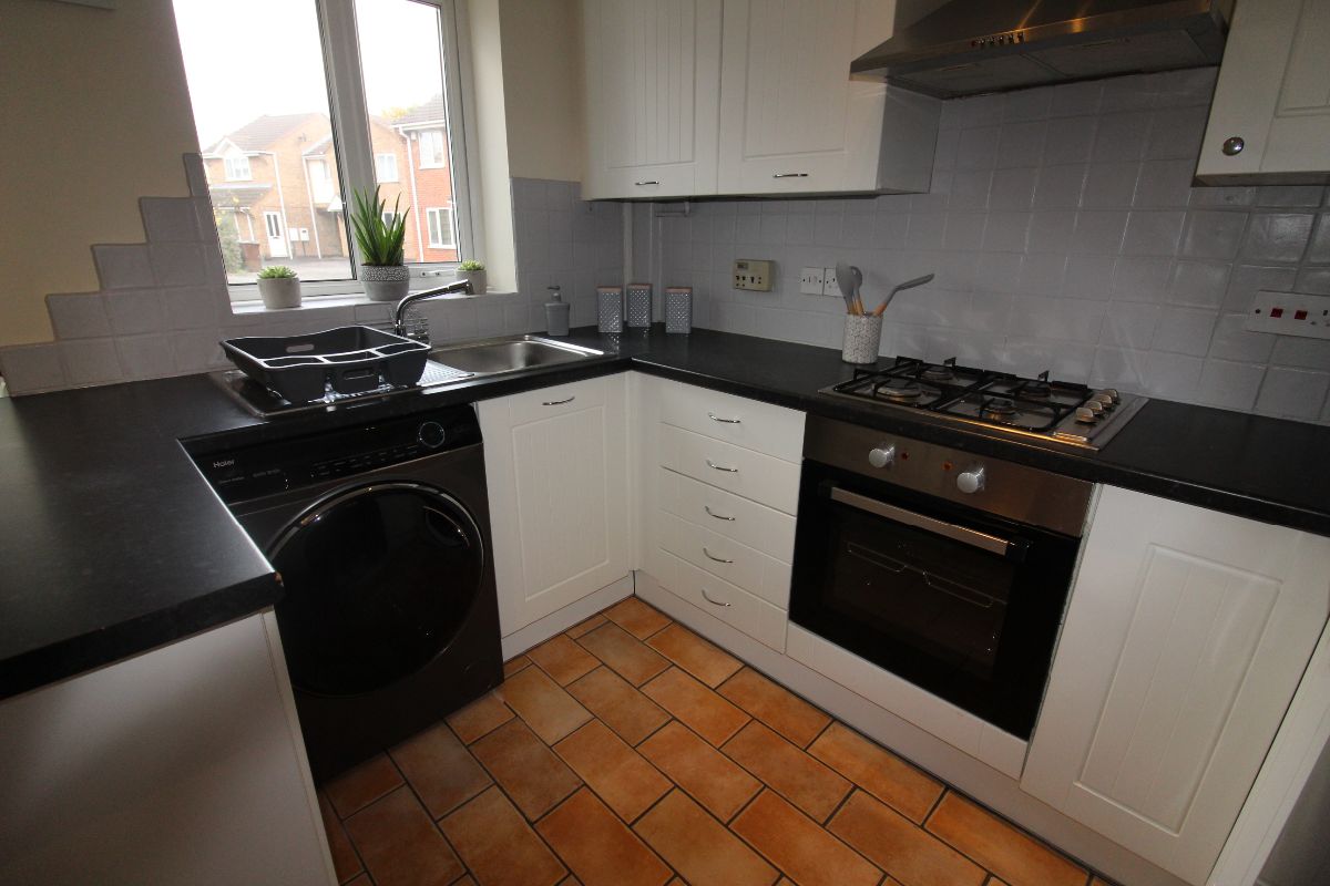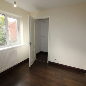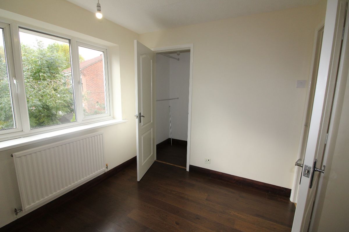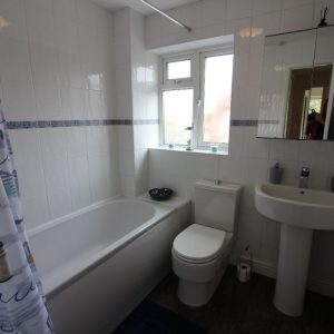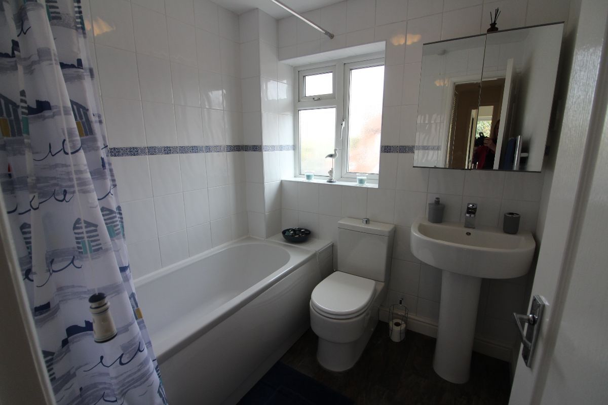 Upstairs, the property benefits from two double bedrooms, one of which includes a walk-in wardrobe. The family bathroom is fitted with a white three-piece suite and a shower over the bath.
