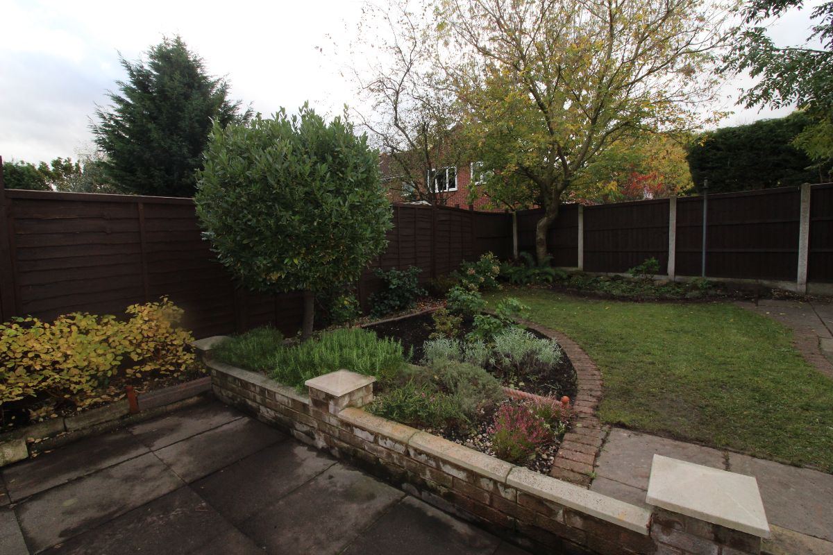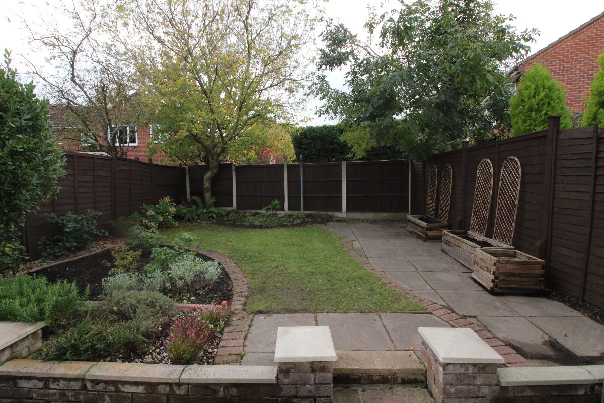 The ground floor offers a modern, spacious kitchen/diner and a generous living room with French doors opening onto a well-maintained, enclosed rear garden. The garden features patio and lawned areas set over two levels, along with a useful garden shed.