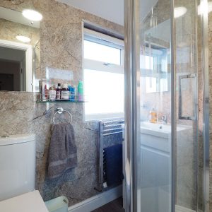 * Own double bedroom with private shower-room are decorated to a high standard in a comfortable house.