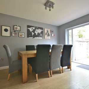 A second well placed reception room between the lounge and the modern kitchen with a radiator, ceiling lighting and patio doors opening into the private rear garden.
