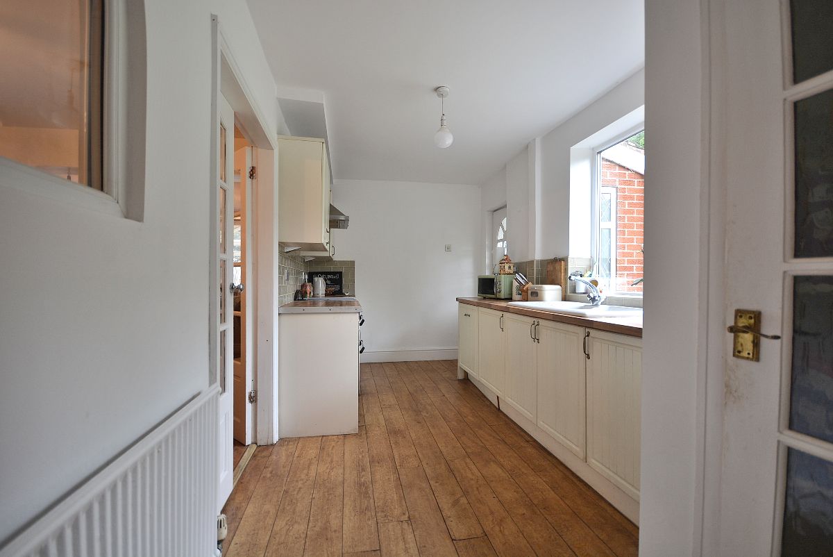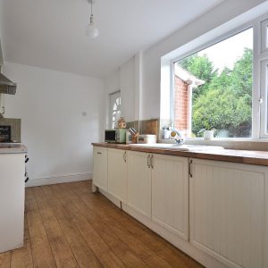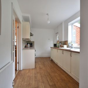A generously sized kitchen fitted with a large amount of storage units including wall cupboards, base units and drawers with working surfaces over. Inset sink with drainer. Space for a cooker, wall mounted extractor hood. There is also an integrated fridge/freezer, integrated dishwasher, ceiling lighting, understairs storage cupboard, double glazed window to the side elevation and access door opening into the rear lobby area and downstairs WC. There are also double doors opening into the second large reception room.