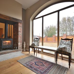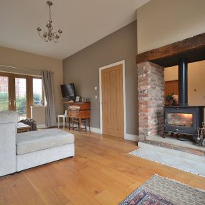 A dual aspect 20ft lounge with feature arch topped full height window to the front elevation which allows an abundant amount of natural light to pour into the property and double glazed French doors opening onto the rear garden, engineered oak flooring with underfloor heating and again enjoying that dual aspect feature fireplace with brick built surround and inset log burner.