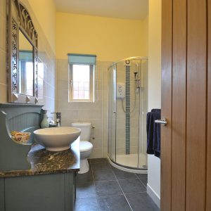 A third shower room/bathroom perfectly placed on the ground floor with a three piece suite comprising a shower enclosure with wall mounted shower, low flush WC and an upstand wash hand basin. There is also an obscure double glazed window to the side elevation and has tiled underfloor heating.