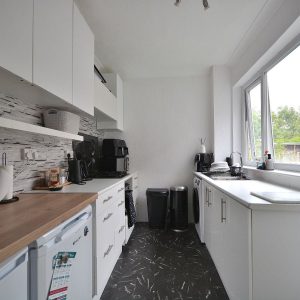 With a range of modern wall cupboards, base units and drawers with working surfaces over. Inset sink with drainer and mixer tap. There is space for an oven, four ring hob, space for a fridge/freezer and plumbing for a washing machine. There is also ceiling lighting and a double glazed window and door to the rear elevation.