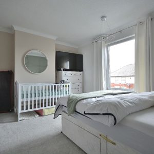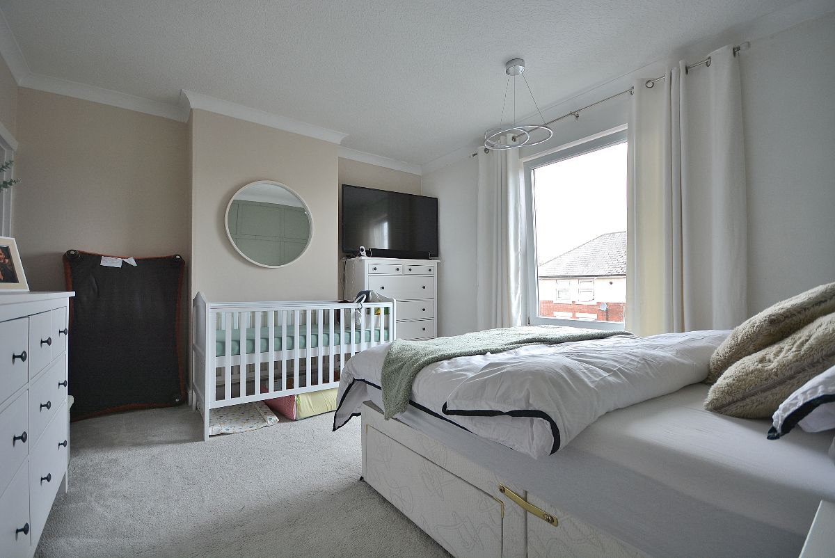 A second spacious double bedroom with a radiator, wall lighting and a double glazed window to the rear elevation.
