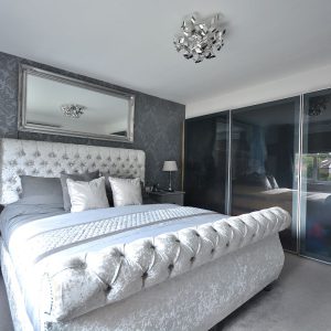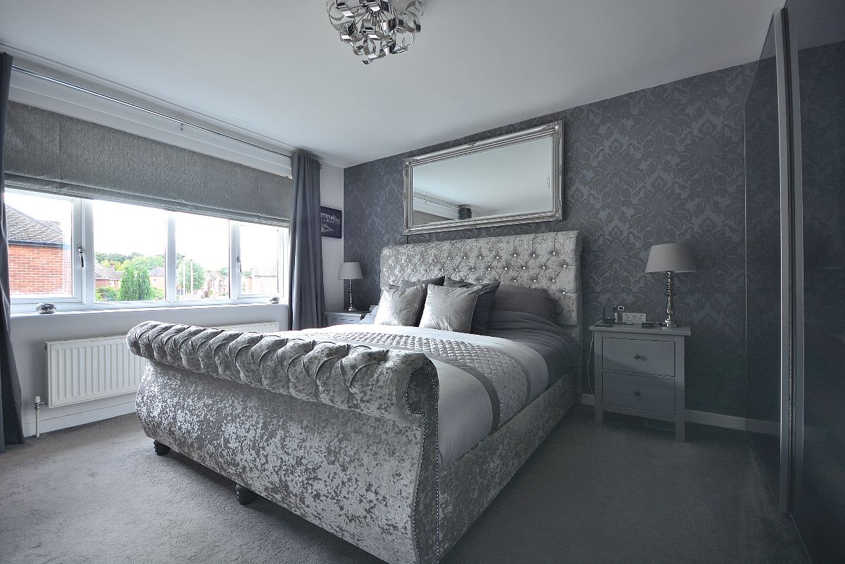 A spacious master bedroom with fitted wardrobes. There is also a radiator, ceiling lighting and a double glazed window to the rear elevation.