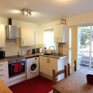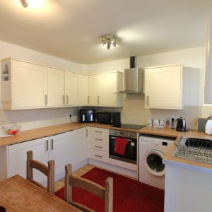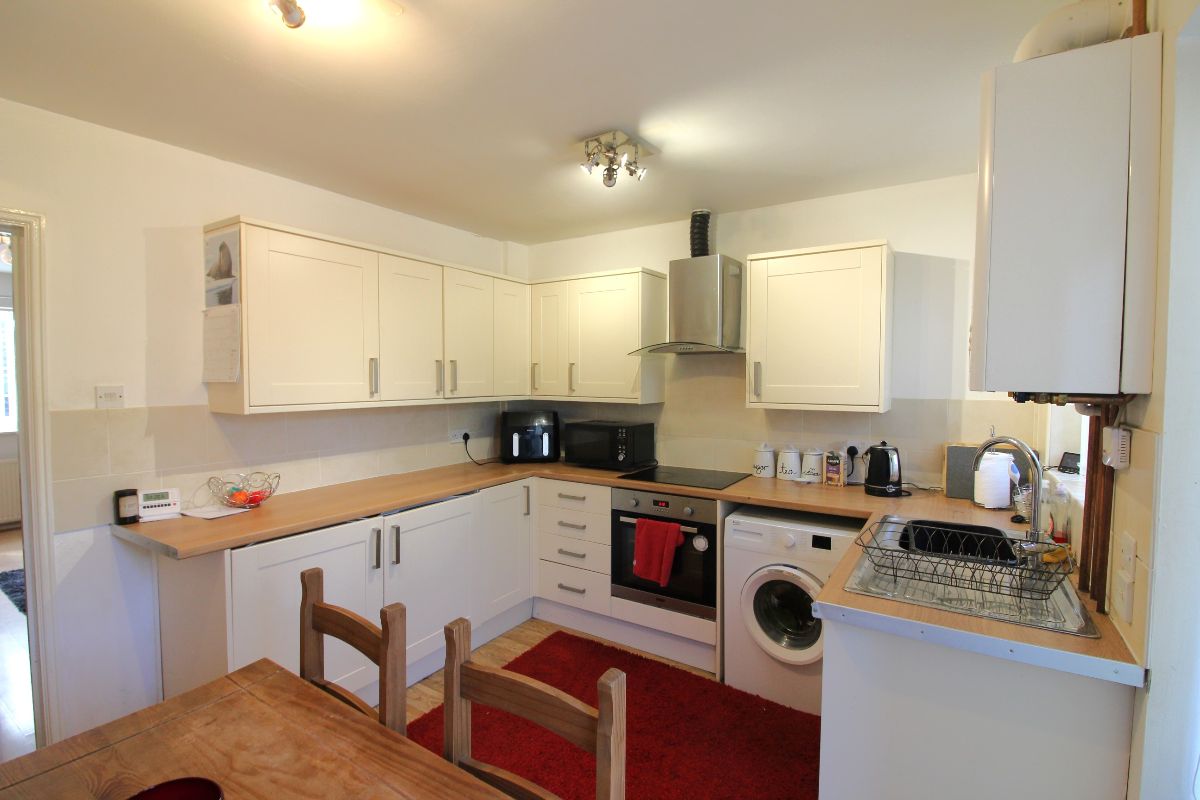 Ground Floor - Entrance hall with storage cupboard. Spacious Reception Room . Kitchen/ Dining area complete with a good selection of wall and base units, Electric Hob and Electric Oven, Extractor Hood, Integrated Fridge and Freezer, plumbing for a washing machine and also space for a dining room table and chairs.