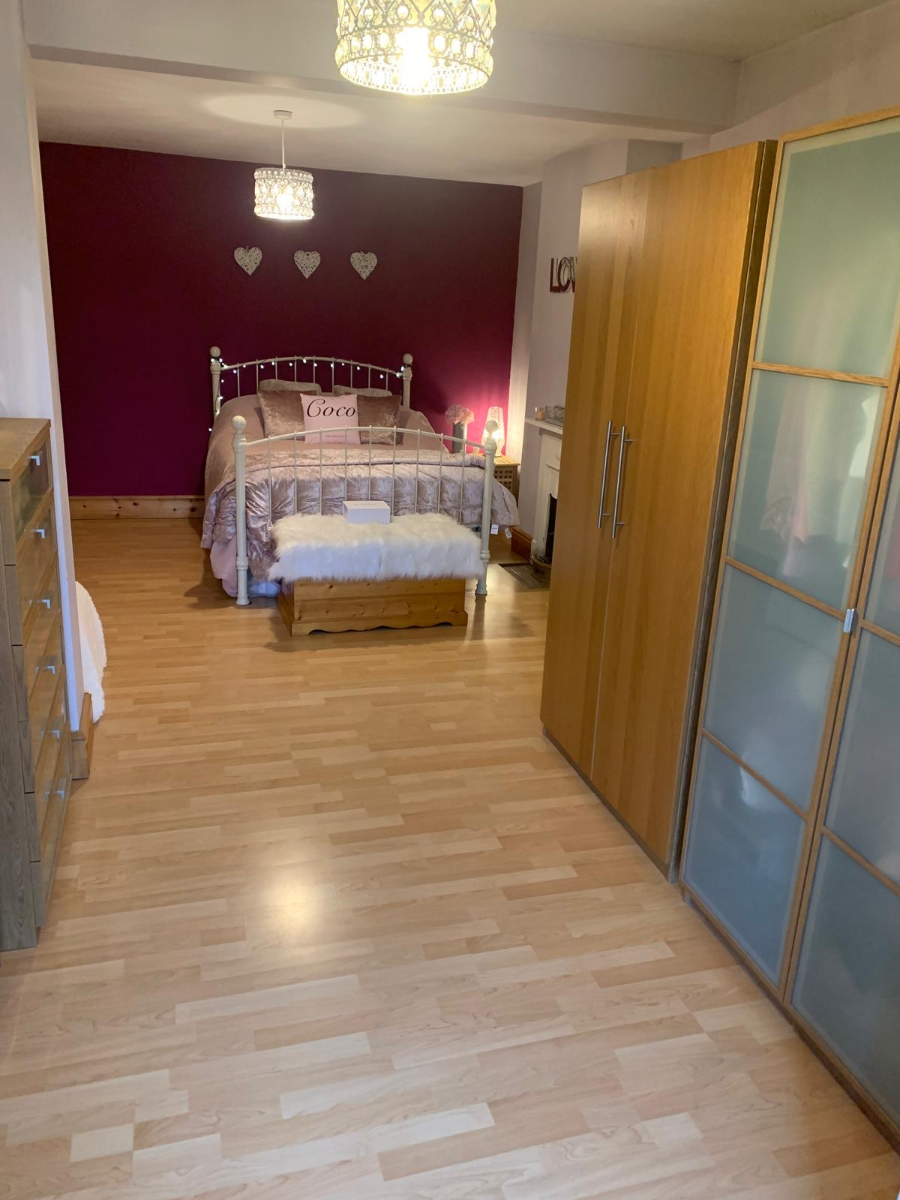 A third large double bedroom with a radiator, ceiling lighting and a double glazed window to the front elevation.