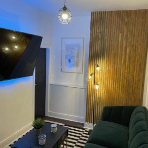 The fully fitted kitchen includes all essential appliances, such as a dishwasher, while the lounge features a television and mood lighting, creating the perfect space to relax and socialise.