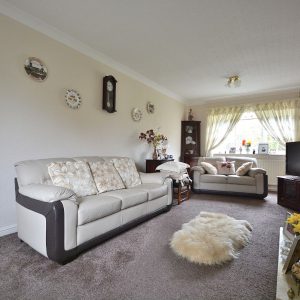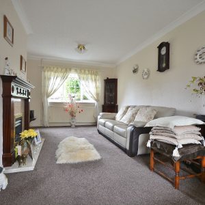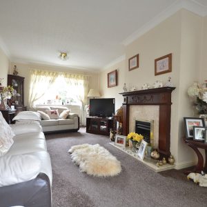 A large 20ft dual aspect lounge which offers plenty of living and dining space with a central fireplace with inset electric fire. There are also radiators, ceiling lighting, double glazed windows to the front and rear elevations.