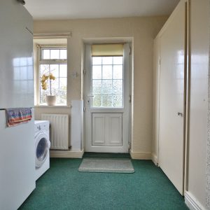 A handy well placed rear lobby offering a handy alternate entrance with store room and access into the kitchen and downstairs WC. There is also ceiling lighting and a UPVC double glazed door opening onto the rear garden.