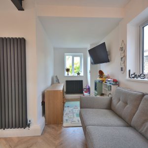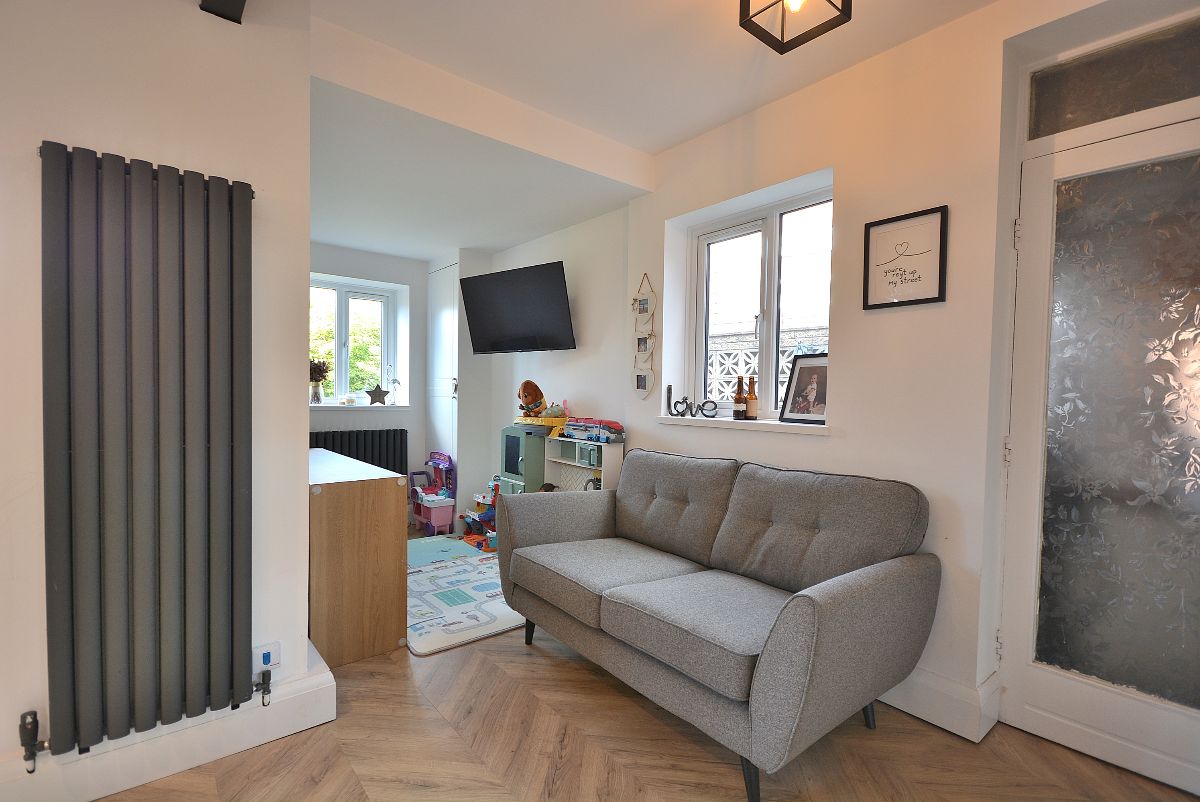 A third and final bedroom with ceiling lighting, radiator and a double glazed window to the front elevation.